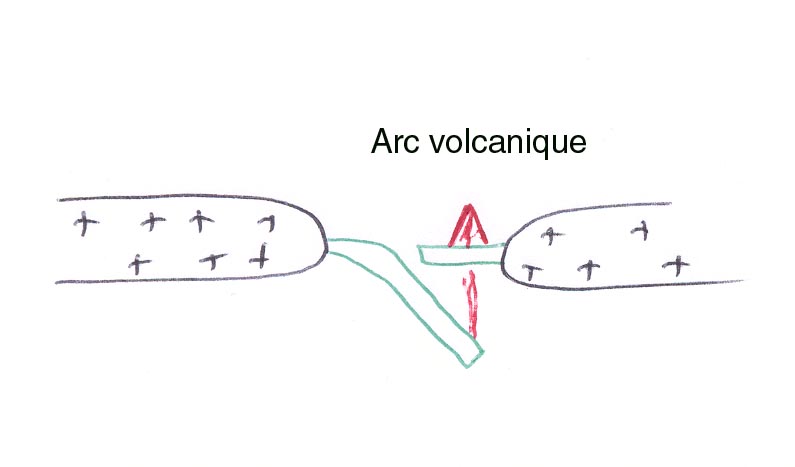 Lors de la subduction un arc volcanique se crée à proximité d’une croûte continentale. C’est une chaîne liminaire. Le stade chaîne liminaire précède la collision du type alpin.