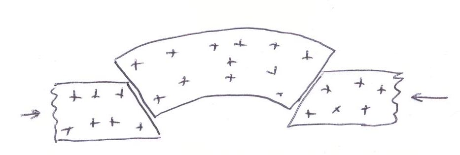 Il peut cependant y avoir compression comme effet secondaire. Les sédiments plus légers résistent à un tel enfoncement et forment des écailles sédimentaires qui s’empilent du fait de la compression résultant du raccourcissement du plancher. Ce sont des prismes d’accrétion comme les îles Tonga ou de La Barbade.