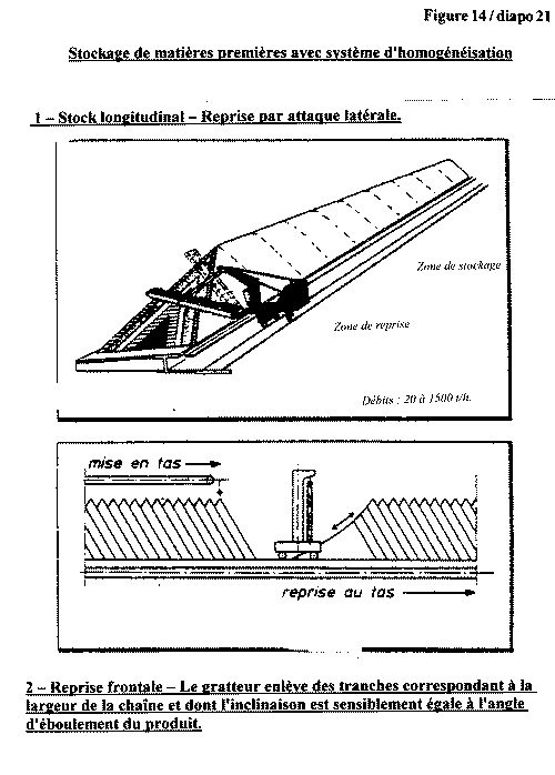 2– Préparation des crus. Cette opération demande une homogénéisation parfaite pour assurer une composition régulière, d'où la nécessité d'un contrôle poussé. Cette préparation a longtemps été effectuée par voie humide; dans des délayeurs de grande capacité. L'opération était en général très satisfaisante, mais coûteuse, à cause de la grande quantité d'énergie nécessaire à l'évaporation de l'eau de délayage. Aussi, la préparation par voie humide a-t-elle été rapidement remplacée par des procédés d'homogénéisation par voie semi-humide (granulation), puis par voie sèche, à partir du "premier choc pétrolier" (1973) . Cette évolution importante a entraîné la mise au point de systèmes de préhomogénéisation et d'homogénéisation aujourd'hui universellement adoptés (Figures 14, 15 ). Cela