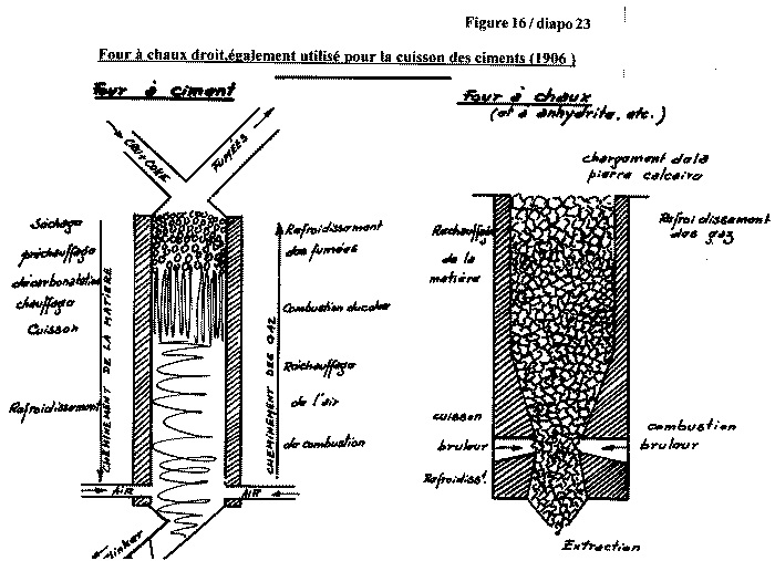 3- Cuisson. Les premiers fours utilisés étaient des fours droits assez semblables à ceux utilisés pour la fabrication de la chaux (Figure 16 ).